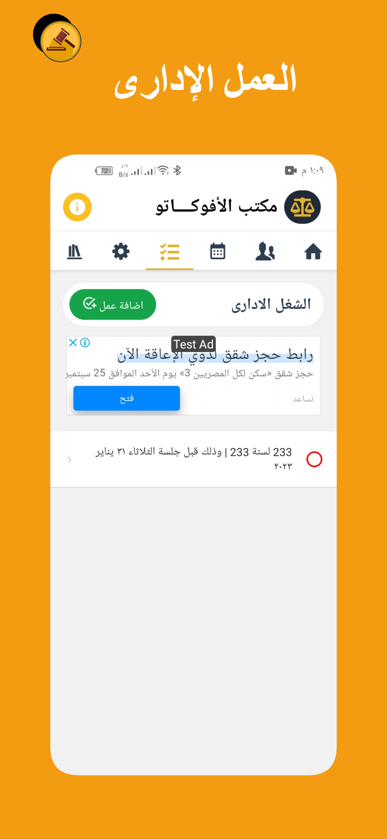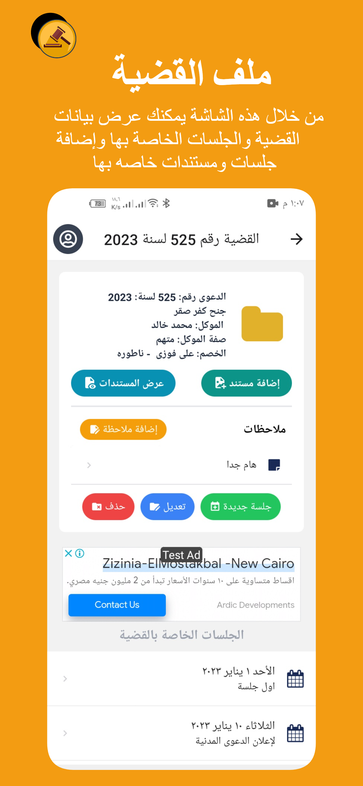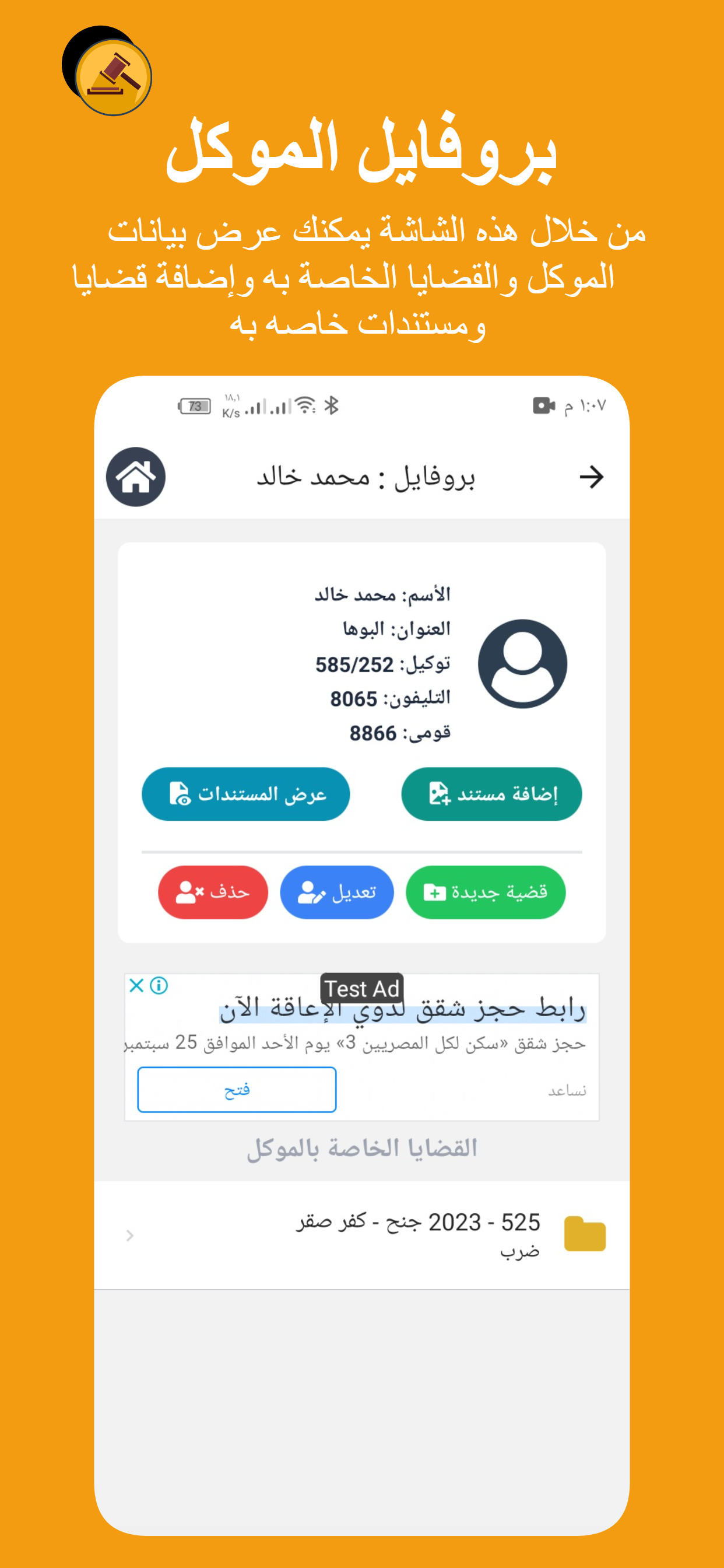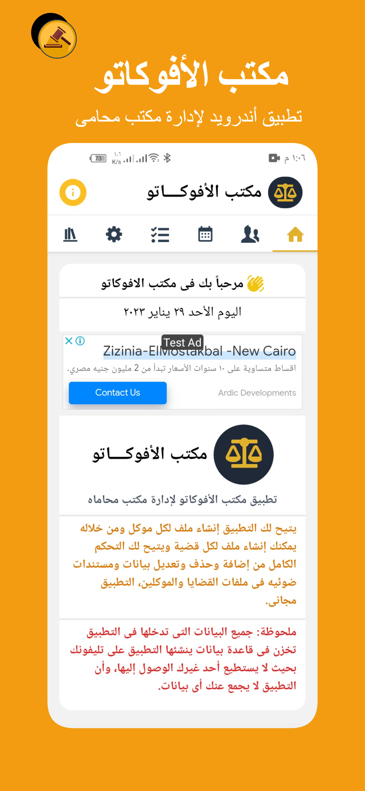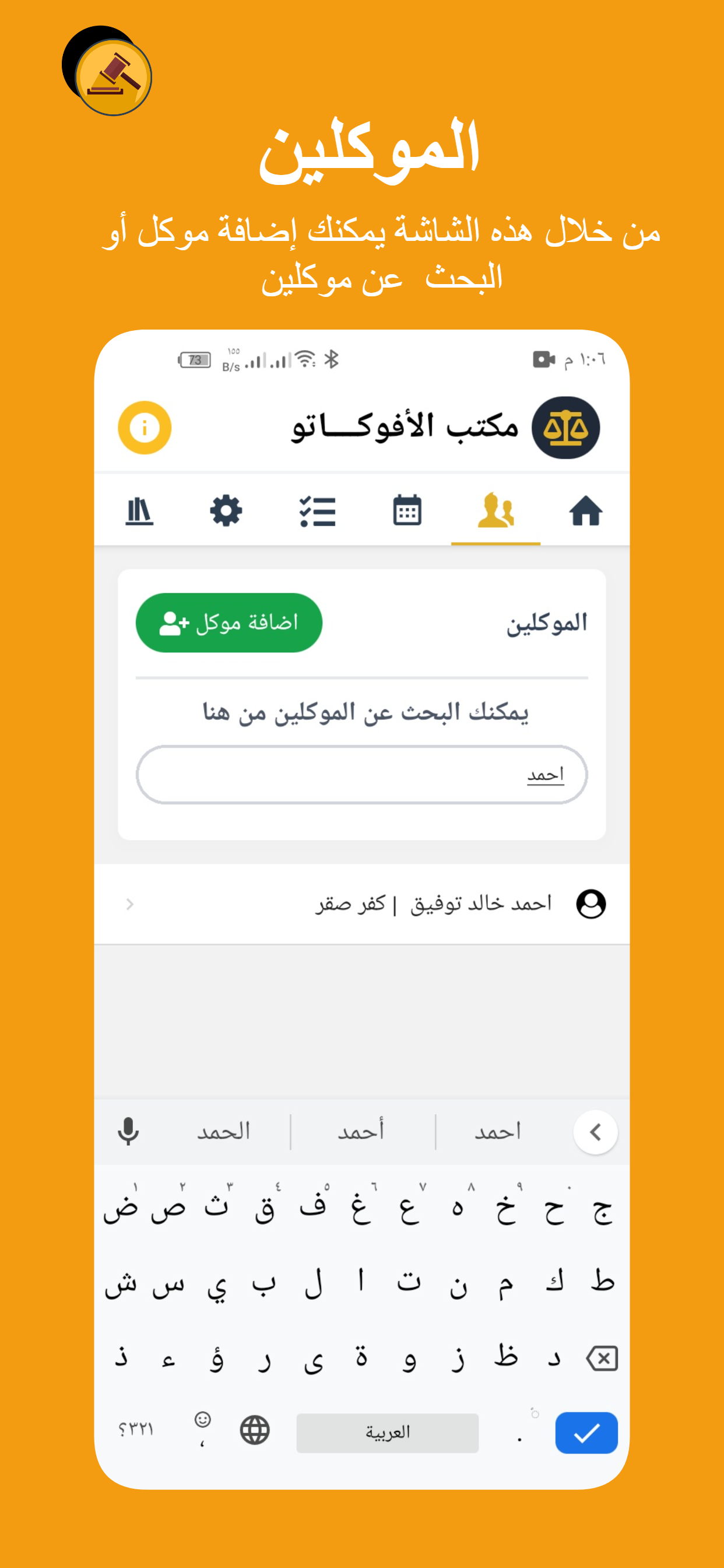 تطبيق لإدارة مكتب محامى حيث يتيح لك التطبيق إنشاء ملف لكل موكل ومن خلاله يمكنك إنشاء ملف لكل قضية ويتيح لك التحكم الكامل من إضافة وحذف وتعديل بيانات ومستندات ضوئيه فى ملفات القضايا والموكلين